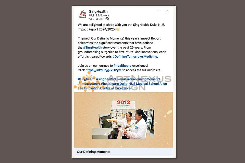 Sep 15, 2025We are stoked to have been selected once again as the agency for the SingHealth Impact Report. Our work encompasses a complete solution from research and conceptualisation to interviews, content writing, photography, illustrations, UI/UX design and online development. At Artnexus, our team has the extensive experience to deliver outstanding results. Our passionate approach ensures that we go the extra mile at every touchpoint to achieve our customers’ goals and provide meaningful outcomes.